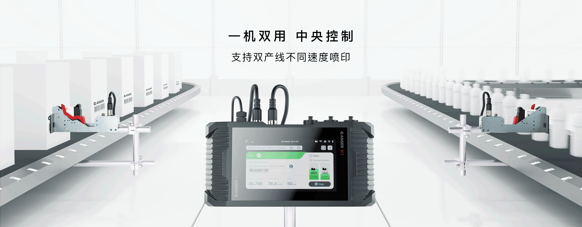 雙噴頭可噴印50厘米字高,大幅降低安裝空間及設(shè)備采購成本,兩寸大幅面噴印更可取代外